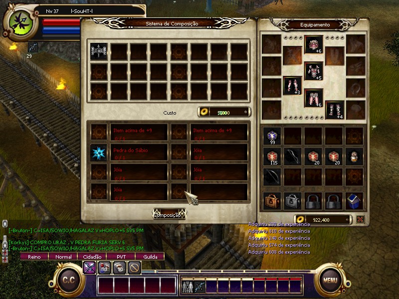 Bom, vocês irão precisar de 2 itens +9 iguais! Exemplo: 2 calças embutido com o add desejado, 30/7 30/10 etc, 1 pedra do sabio, 4 joias iguais (Coral,Esmeralda,Diamante,Garnet) e 50kk